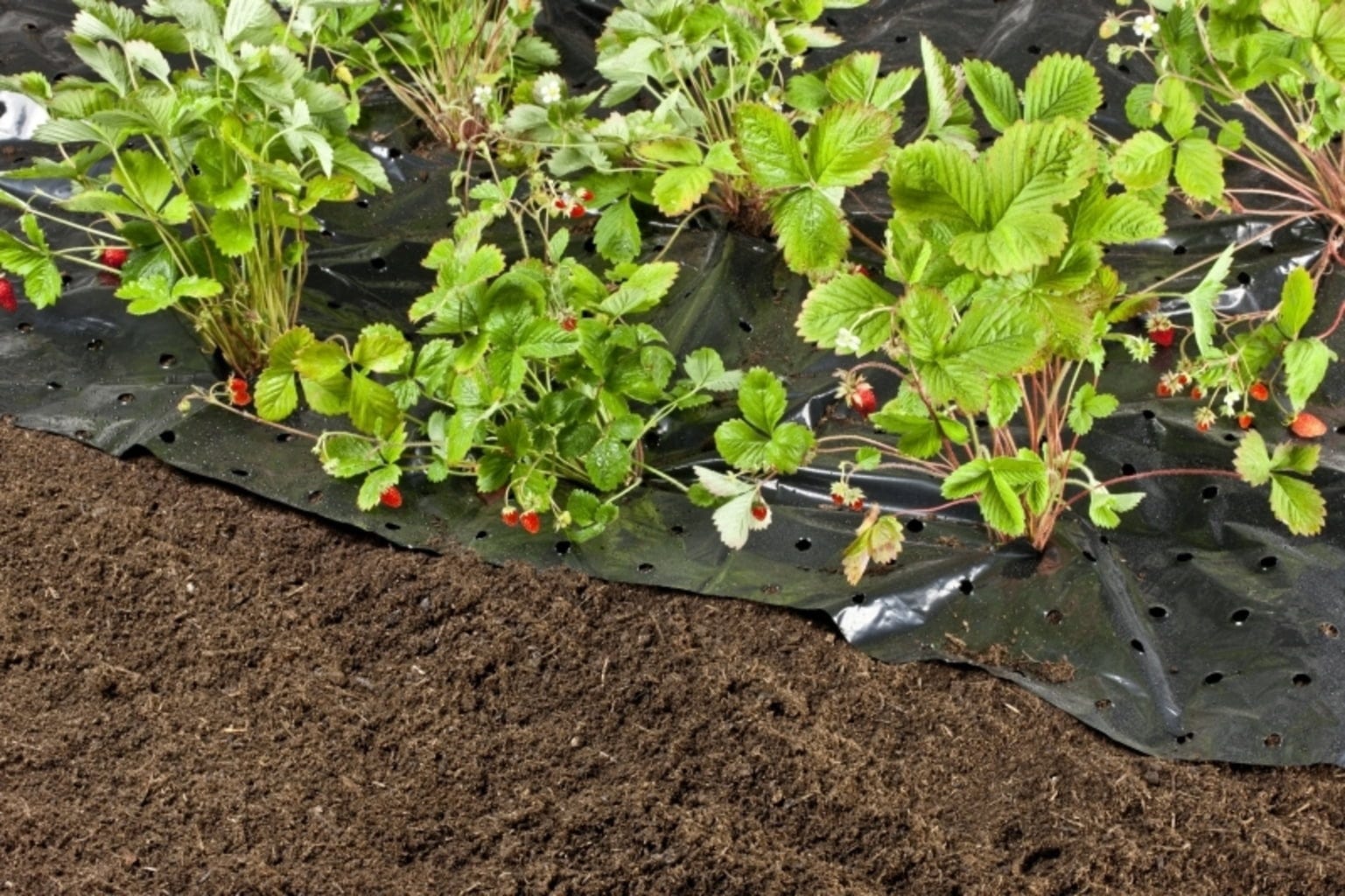 Czarna folia odporna na promieniowanie UV zapewnia naturalną kontrolę chwastów i wspomaga wzrost truskawek oraz innych owoców i warzyw. Perforacje zapewniają optymalną wymianę ciepła, a tym samym umożliwiają wcześniejsze zbiory.