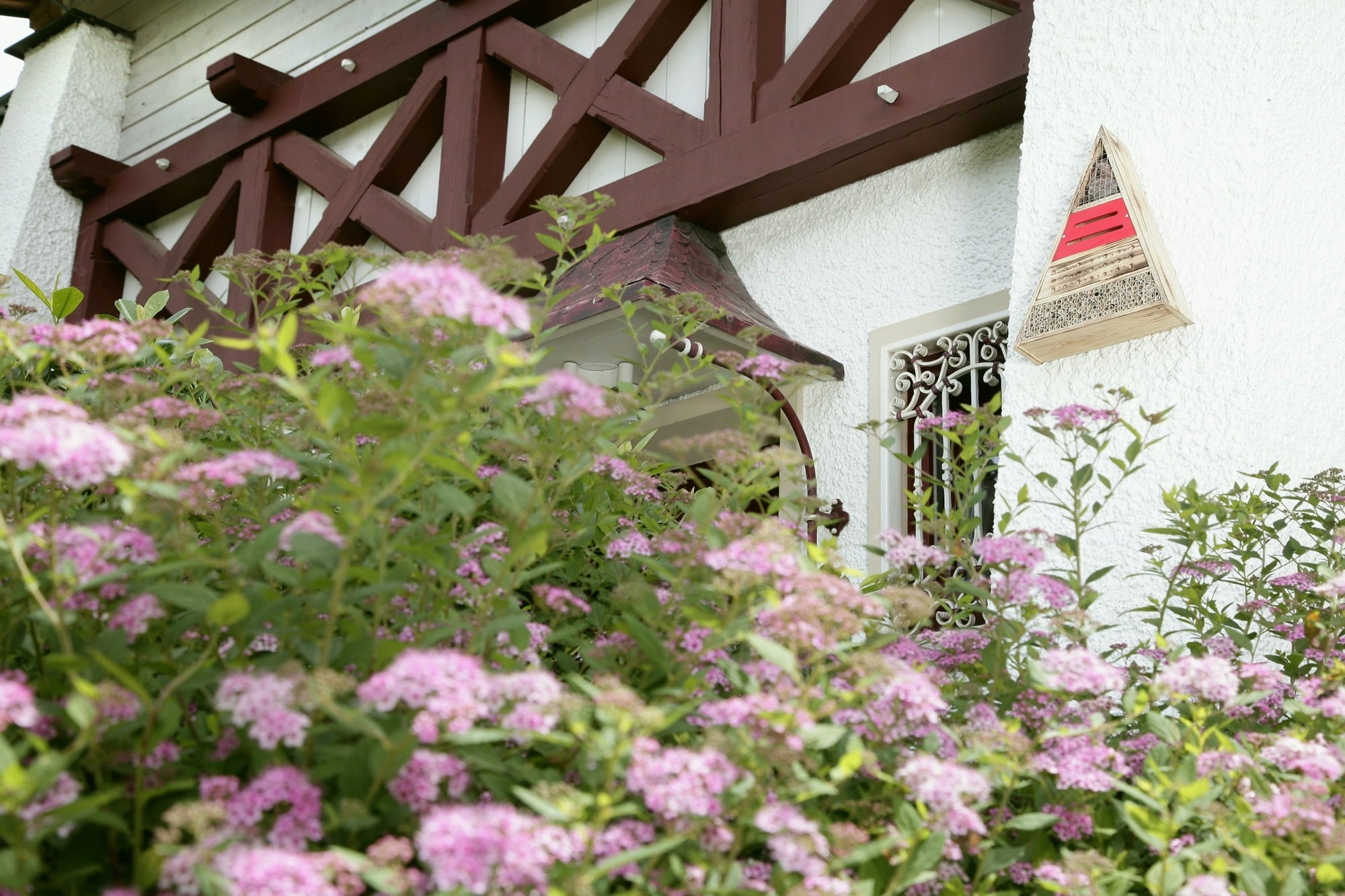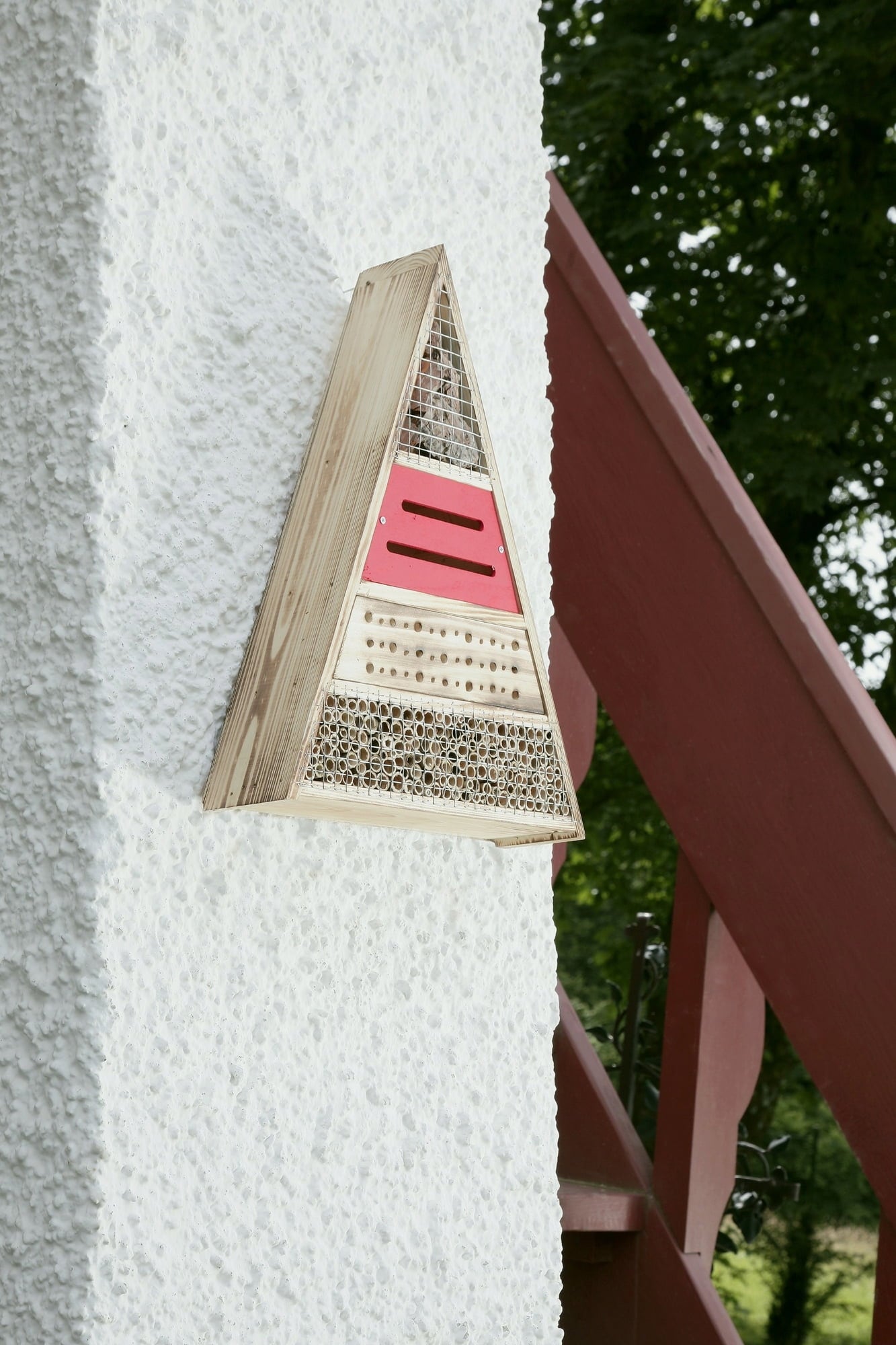 Ten hotel dla owadów to nie tylko ładna dekoracja ogrodu, ale przede wszystkim cenne miejsce gniazdowania i zimowania dla wielu pożytecznych owadów, takich jak biedronki, złotookie, pasożytnicze osy, skorki i dzikie pszczoły. Trzciny umieszczone w pewnej odległości od metalowej siatki ułatwiają owadom dostęp do poszczególnych trzcin, a także zapobiegają zjadaniu lęgu przez ptaki.