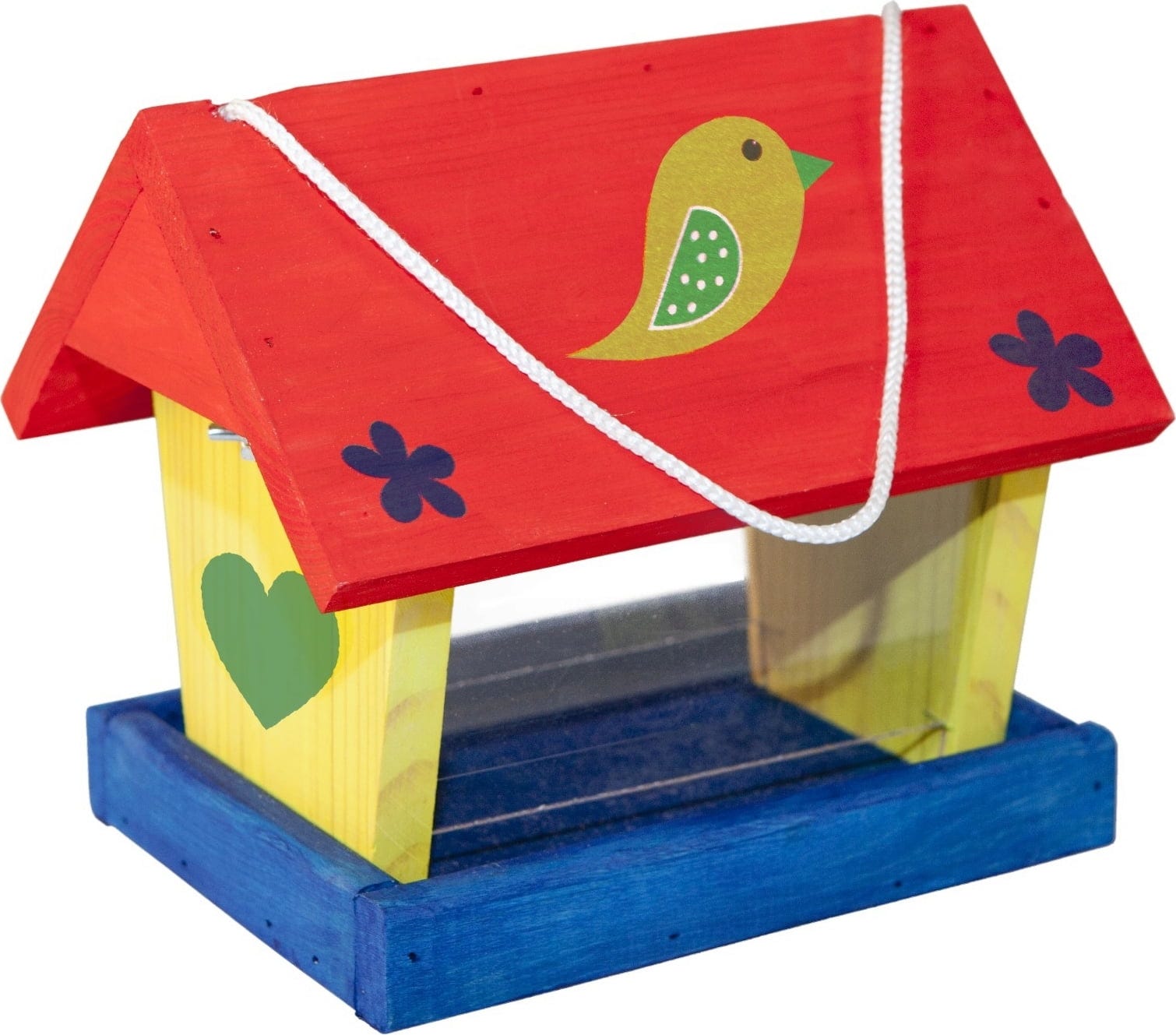Zestaw zawiera zestaw konstrukcyjny budki lęgowej, cztery kolory, pędzel i szablony do wycięcia.