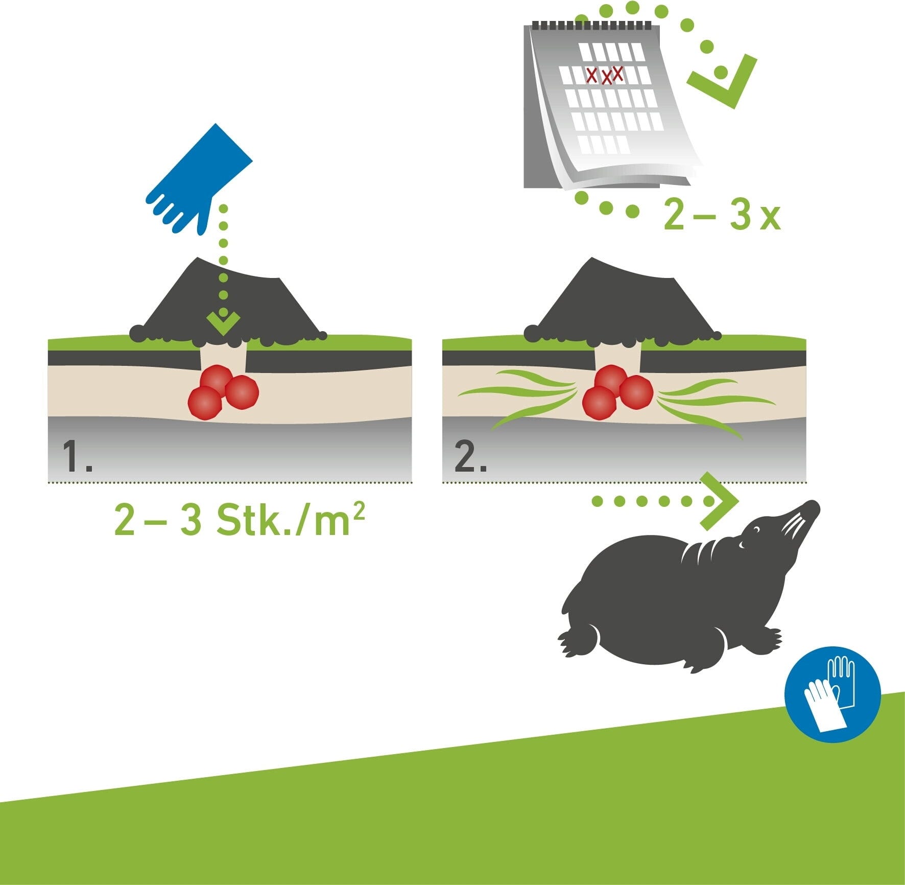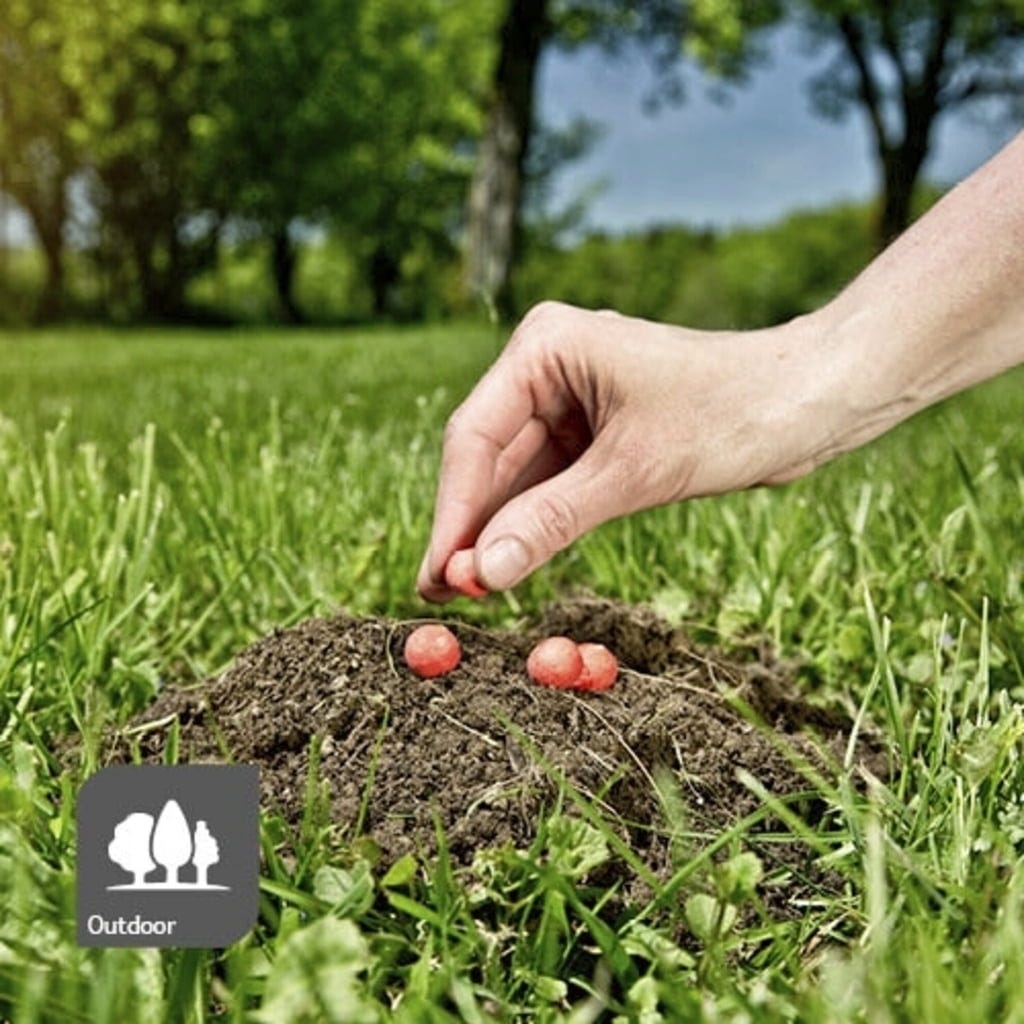 Dla uzyskania najlepszych rezultatów gleba powinna być sucha, ponieważ substancje zapachowe mogą się wtedy lepiej rozprzestrzeniać. Należy unikać bezpośredniego kontaktu ze skórą, aby nie zniekształcić zapachu kulek. Produktów biobójczych należy używać z zachowaniem środków ostrożności. Przed każdym użyciem należy przeczytać etykietę i informacje o produkcie!