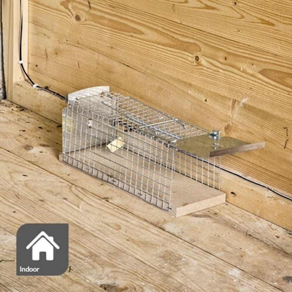 Chcesz pozbyć się szczurów bez użycia trucizny i przemocy? W takim przypadku wystarczy ustawić tę drucianą pułapkę skrzynkową równolegle do ściany i zaczekać. Przynęta przyciągnie małe szkodniki, a minimalne dotknięcie natychmiast uruchomi mechanizm zamykający, więżąc zwierzę w pułapce.