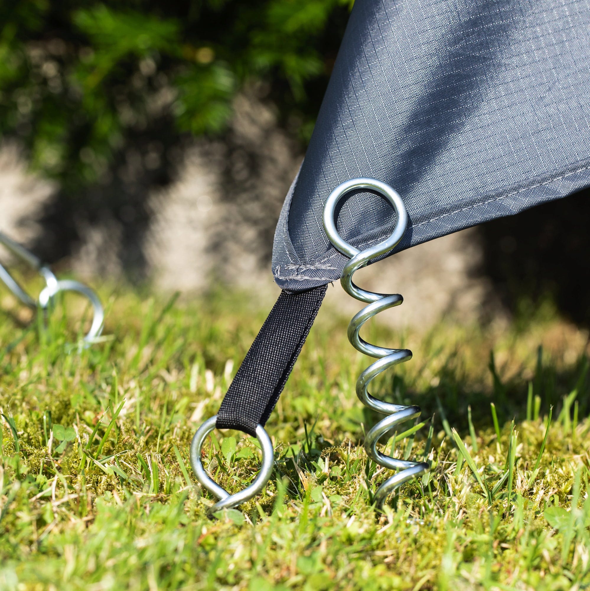 Spiralny śledź gruntowy umożliwia łatwe wkręcanie w podłoże, zapewniając solidne zakotwiczenie plandek, żagli przeciwsłonecznych, trampolin, szklarni pomidorowych czy namiotów. Dodatkowo może służyć do przypięcia psa podczas wyjazdów.