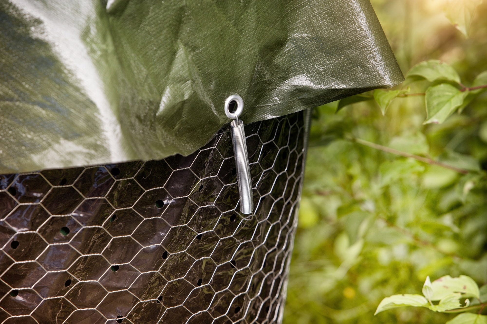 Dzięki tym sprężynom mocującym możesz bezpiecznie przymocować osłonę kompostownika marki Windhager do siatki kompostowej.