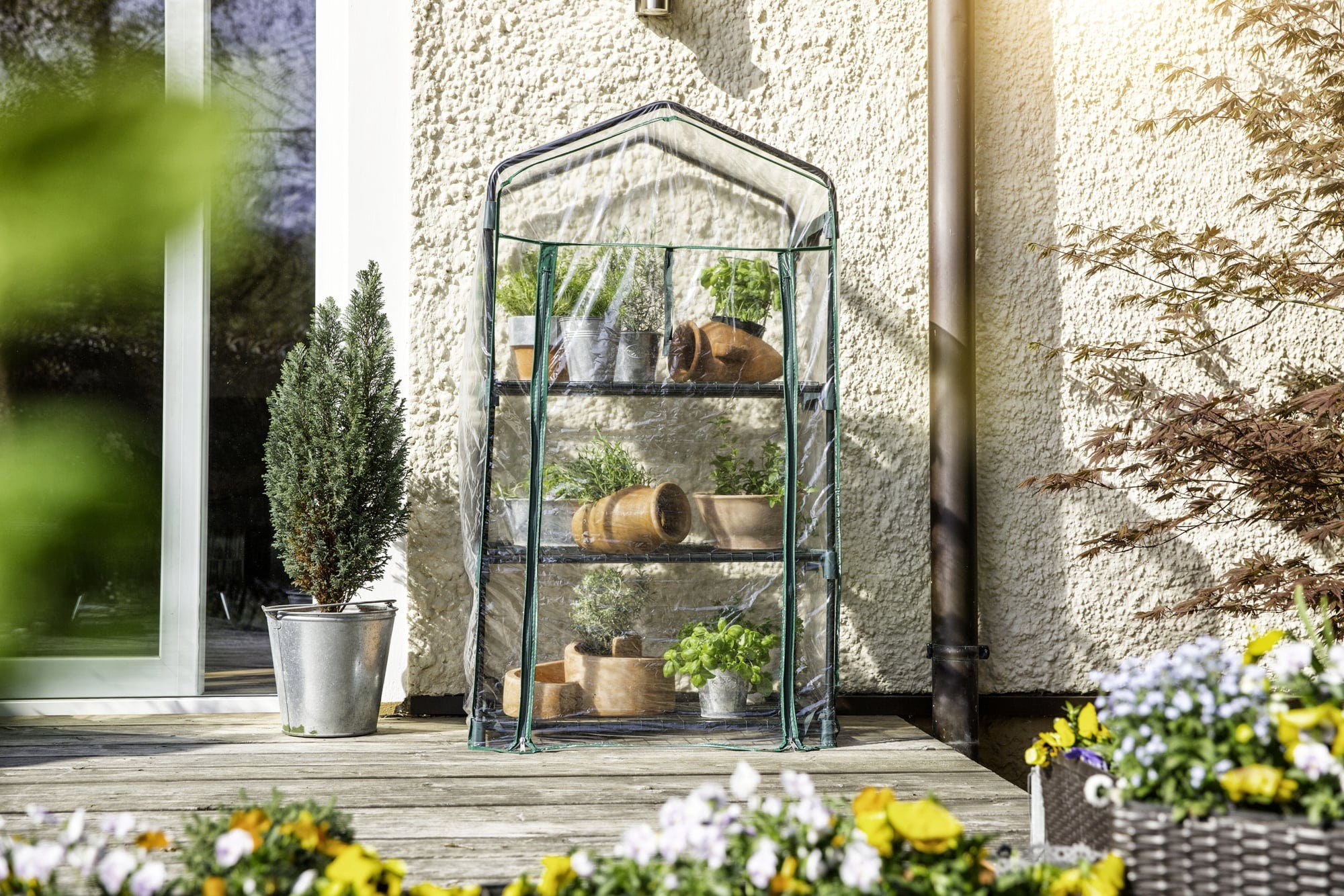 W tej świetnej szklarni balkonowej Twoje rośliny mają najlepsze warunki do doskonałego wzrostu, ponieważ panujący w niej mikroklimat szklarniowy stanowi optymalną podstawę do ich rozwoju. Tutaj rośliny są chronione przed wiatrem i niekorzystnymi warunkami pogodowymi.
