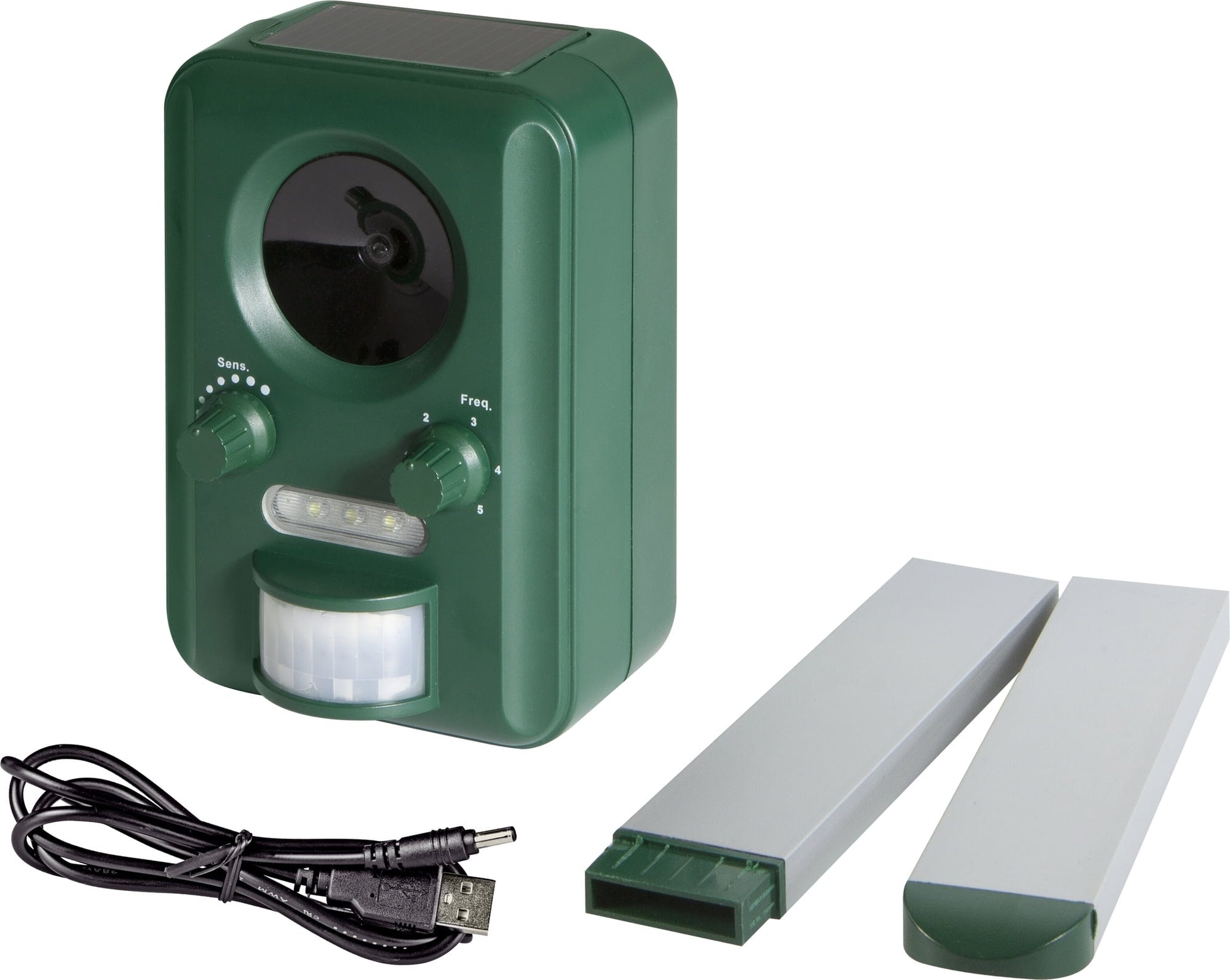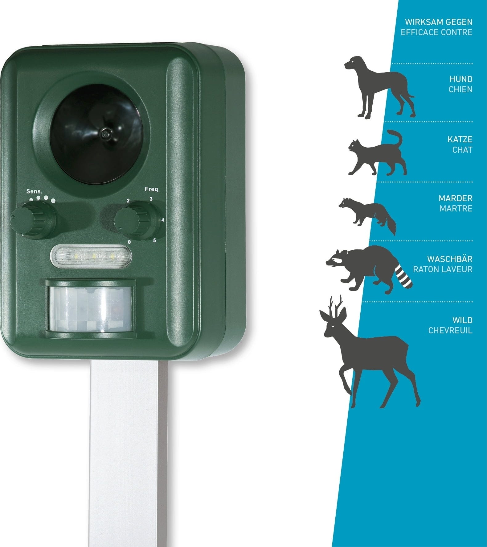 Czy często po Twoim pięknym ogrodzie kręcą się nieproszeni czworonożni przyjaciele? Jeśli chcesz położyć temu kres w sposób przyjazny dla środowiska, ten zasilany energią słoneczną strażnik ogrodowy jest idealnym rozwiązaniem. Ma zasięg do 8 metrów i obszar wykrywania ponad 110°, aby zabezpieczyć obszar do 60 m². Fale ultradźwiękowe o niskiej częstotliwości są ledwo słyszalne dla ludzkiego ucha, ale psy, koty, kuny, szopy i dzikie zwierzęta uważają je za odrażające i szybko uciekają.
